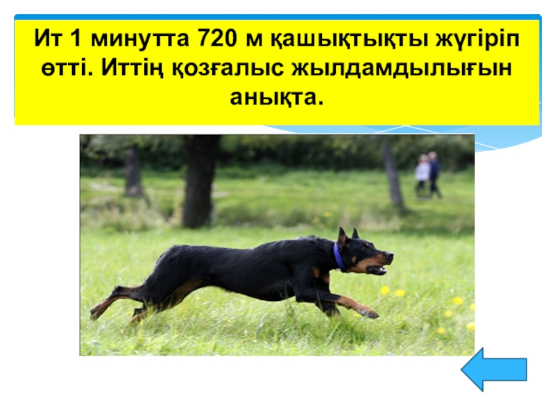 Слайд 8Ит 1 минутта 720 м қашықтықты жүгіріп өтті. Иттің қозғалыс жылдамдылығын