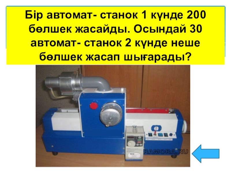 Слайд 7Бір автомат- станок 1 күнде 200 бөлшек жасайды. Осындай 30 автомат-