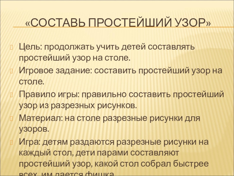 Игровое задание: составить простейший узор на столе.