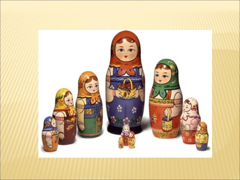 Материал: на столе коллекция матрешек, аудиозапись А. Некрасовой «Матрешки».
