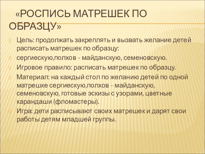 Слайд 24 «РОСПИСЬ МАТРЕШЕК ПО ОБРАЗЦУ»