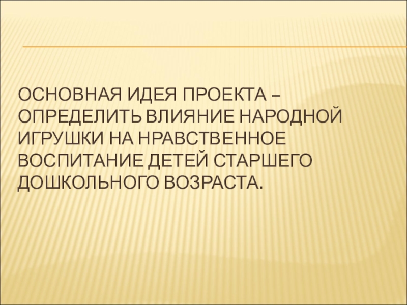 ОСНОВНАЯ ИДЕЯ ПРОЕКТА – ОПРЕДЕЛИТЬ ВЛИЯНИЕ НАРОДНОЙ ИГРУШКИ НА НРАВСТВЕННОЕ ВОСПИТАНИЕ