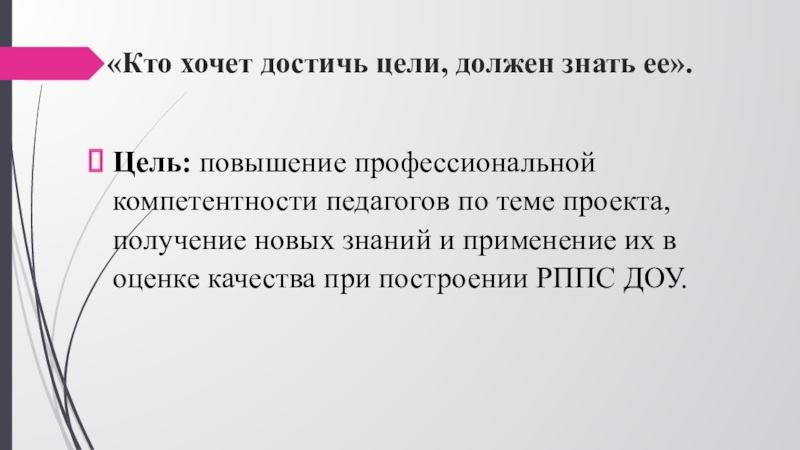 Слайд 2 «Кто хочет достичь цели, должен знать ее».
