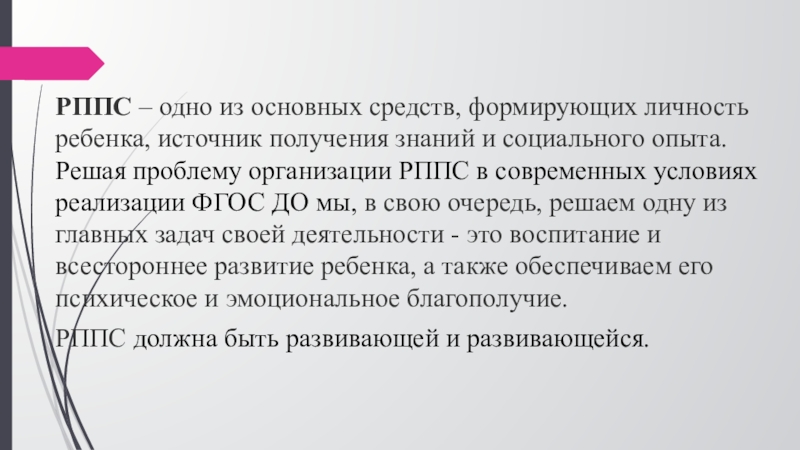 Слайд 9РППС – одно из основных средств, формирующих личность ребенка, источник получения знаний