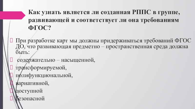 Слайд 11Как узнать является ли созданная РППС в группе, развивающей и соответствует
