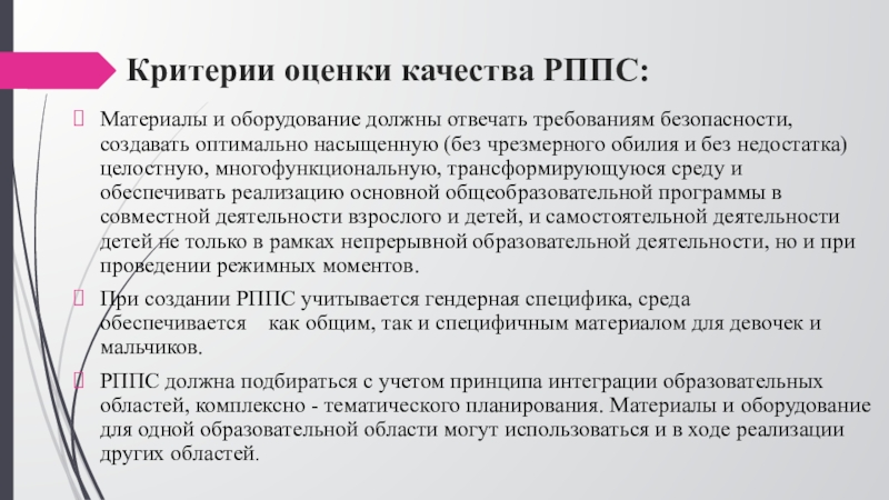 Слайд 12Критерии оценки качества РППС: