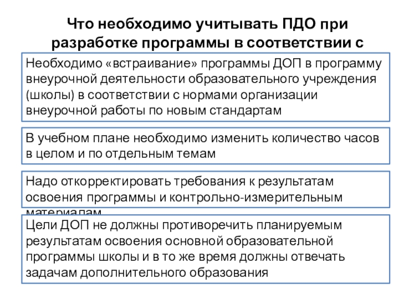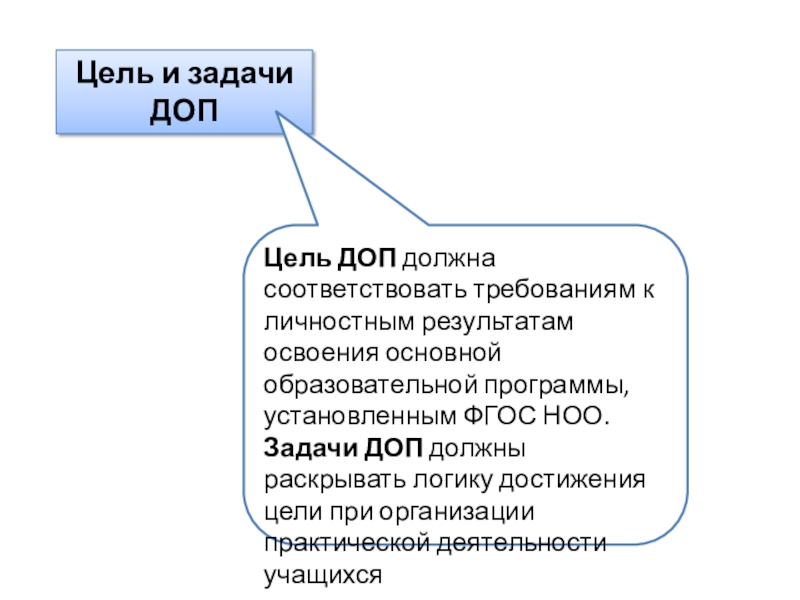 Цели ДОП не должны противоречить планируемым результатам освоения основной образовательной программы школы и в то же время должны отвечать задачам дополнительного образования