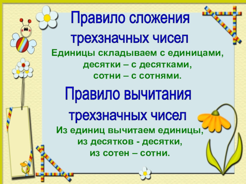 Из единиц вычитаем единицы, из десятков - десятки, из сотен – сотни.