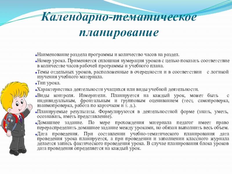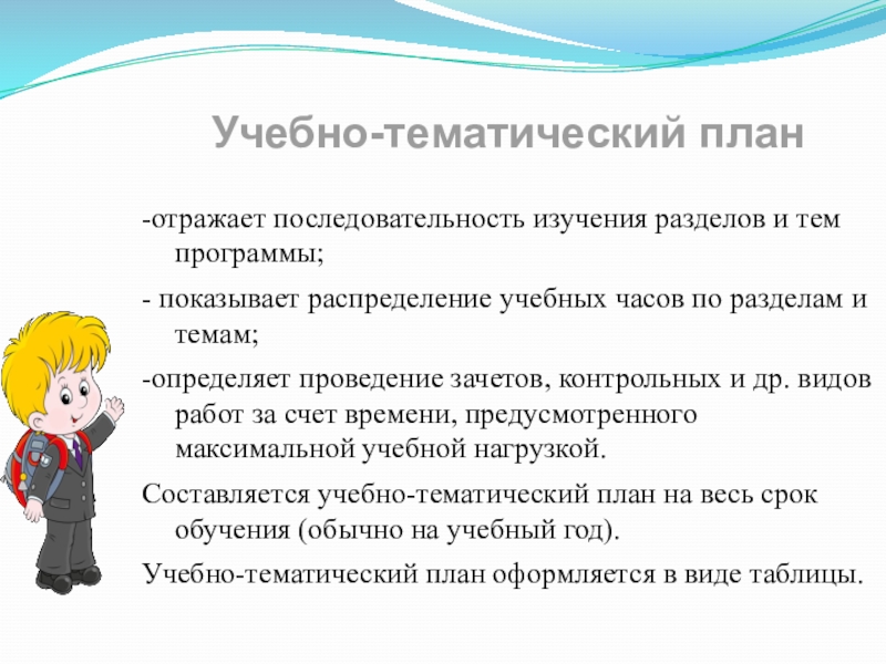 Составляется учебно-тематический план на весь срок обучения (обычно на учебный год).