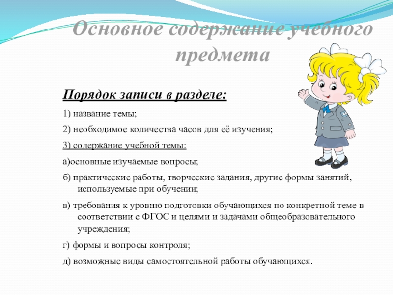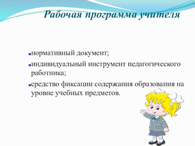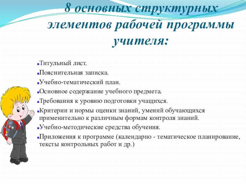 Слайд 138 основных структурных элементов рабочей программы учителя: