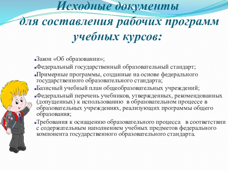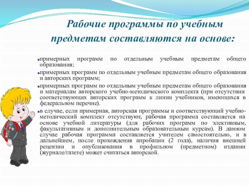 Слайд 11 Рабочие программы по учебным предметам составляются на основе:
