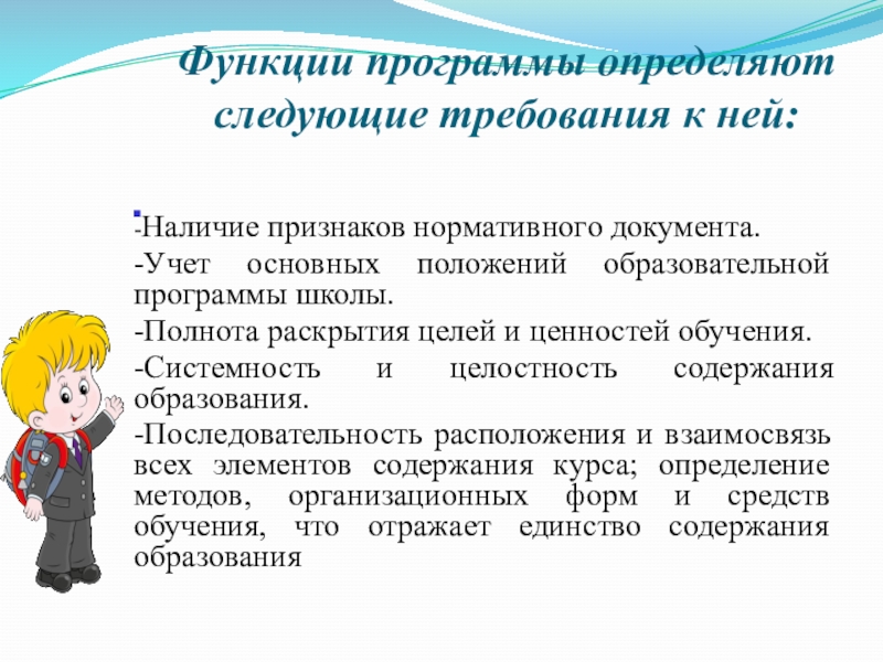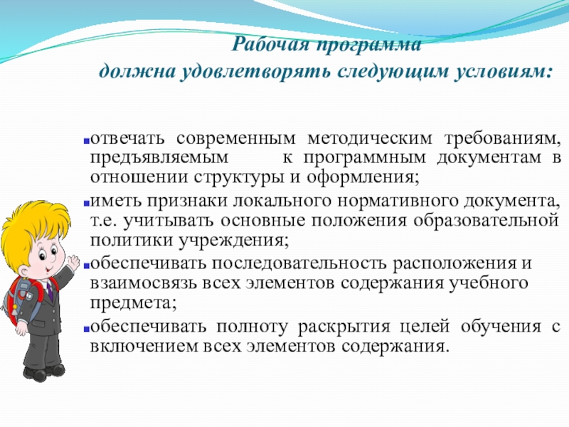 иметь признаки локального нормативного документа, т.е. учитывать основные положения образовательной политики учреждения;