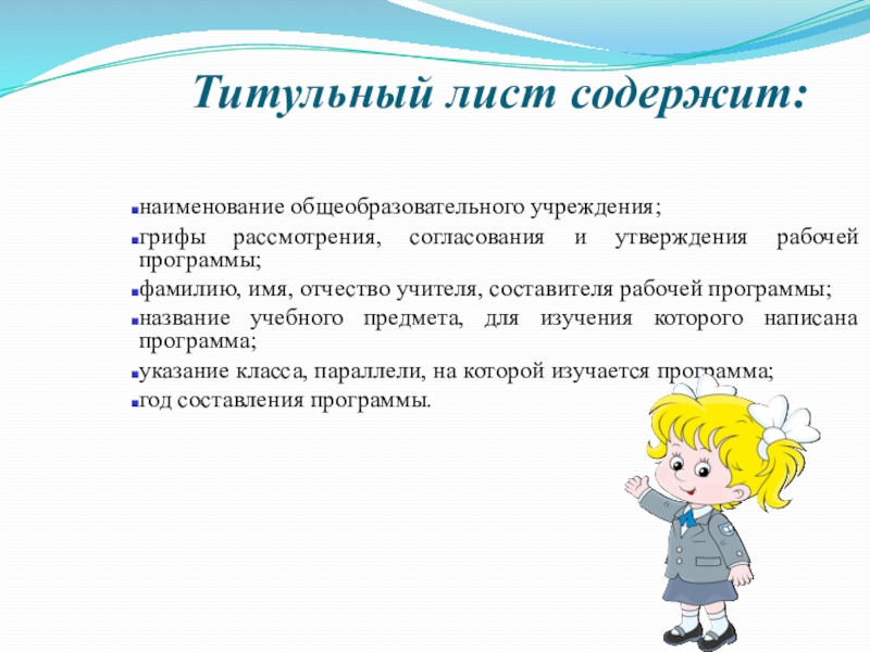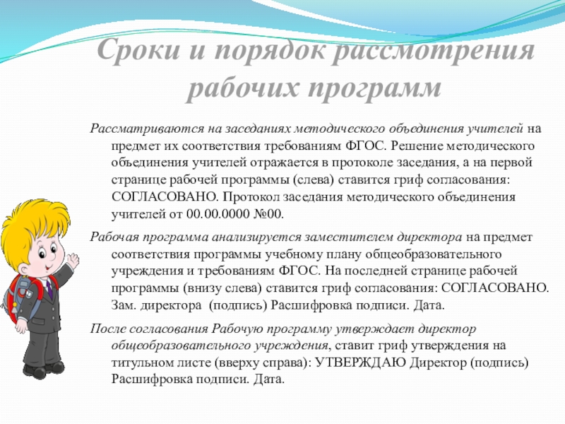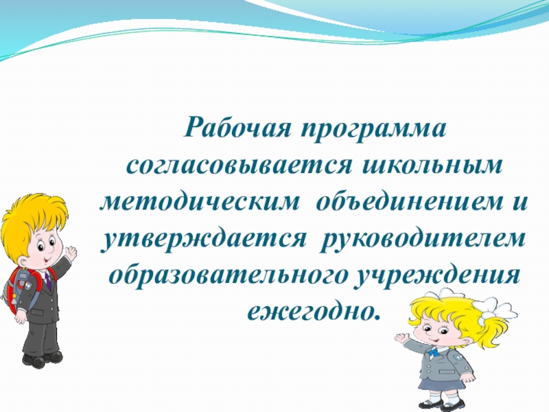 Слайд 12Рабочая программа согласовывается школьным методическим объединением и утверждается руководителем образовательного учреждения