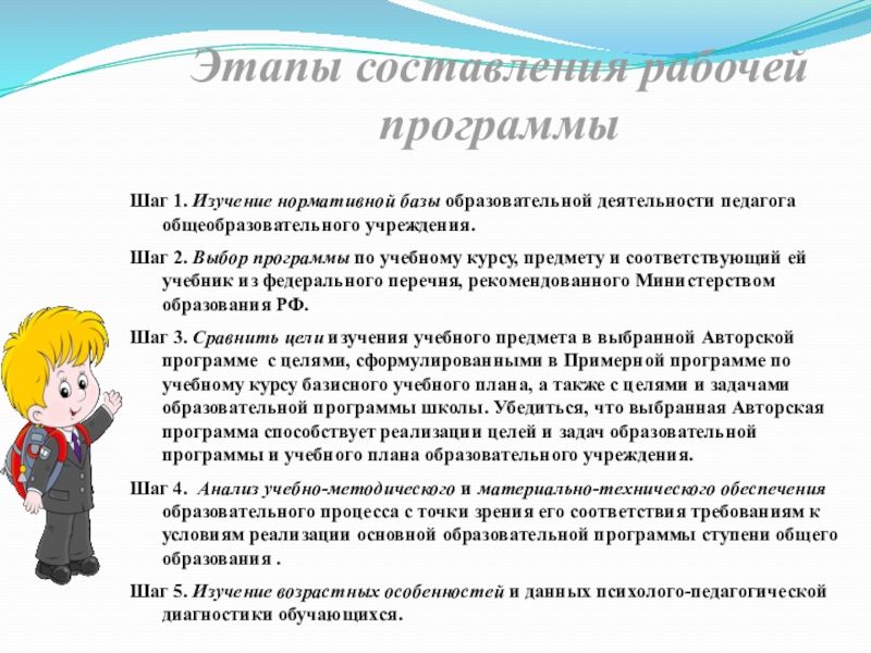 Слайд 28Шаг 1. Изучение нормативной базы образовательной деятельности педагога общеобразовательного учреждения.