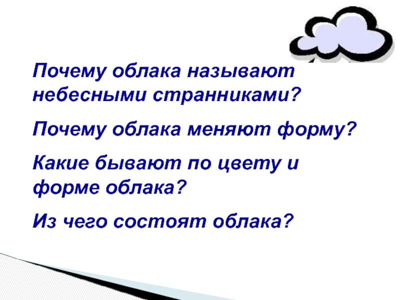 Слайд 2Почему облака называют небесными странниками?