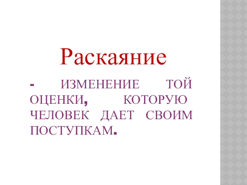 - изменение той оценки, которую человек дает своим поступкам. Раскаяние