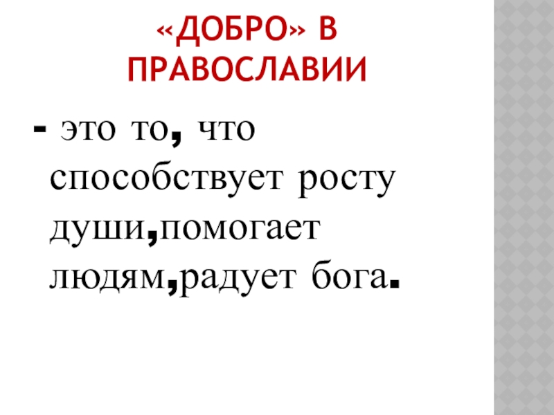 «добро» в православии- это то, что способствует росту души,помогает людям,радует бога.
