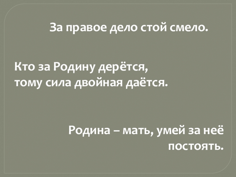Родина – мать, умей за неё постоять.