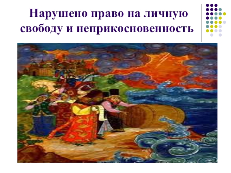Слайд 32 Нарушено право на личную свободу и неприкосновенность