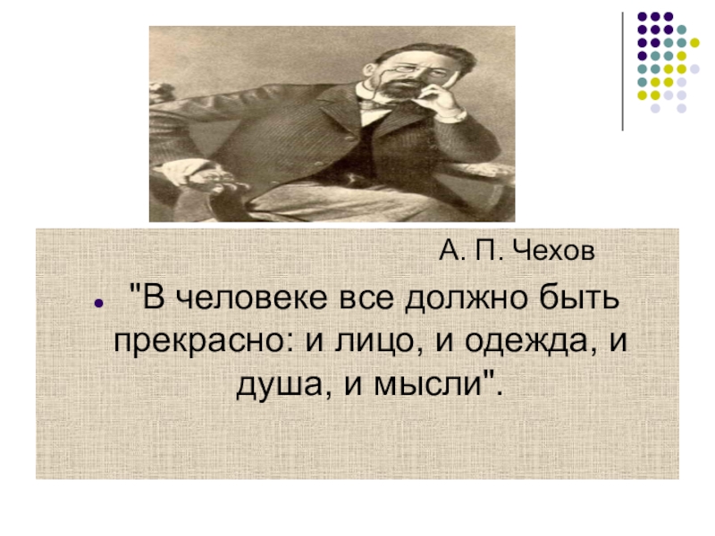 "В человеке все должно быть прекрасно: и лицо, и одежда, и душа, и мысли".