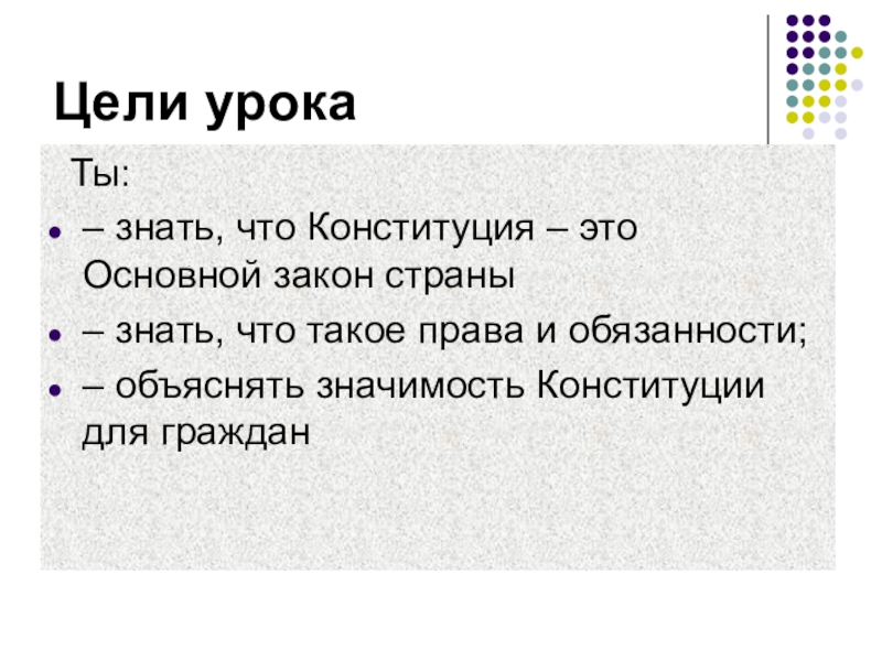 Придя в школу, ты воспользовался своим правом на образование. Закон обязывает тебя стать образованным, знающим человеком, готовым к труду.