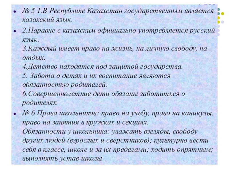Слайд 21№ 5 1.В Республике Казахстан государственным является казахский язык.
