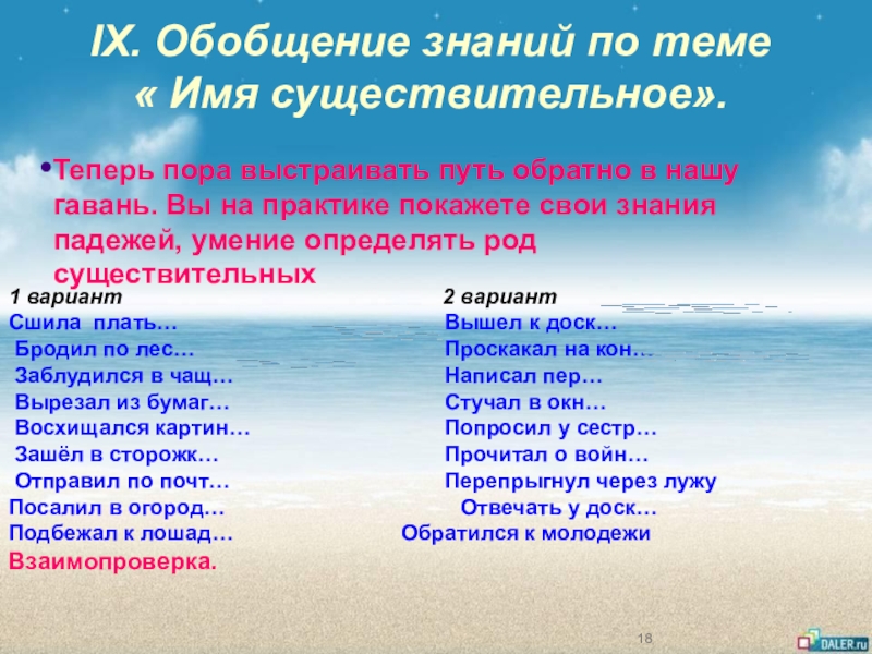 Сшила плать… Вышел к доск…