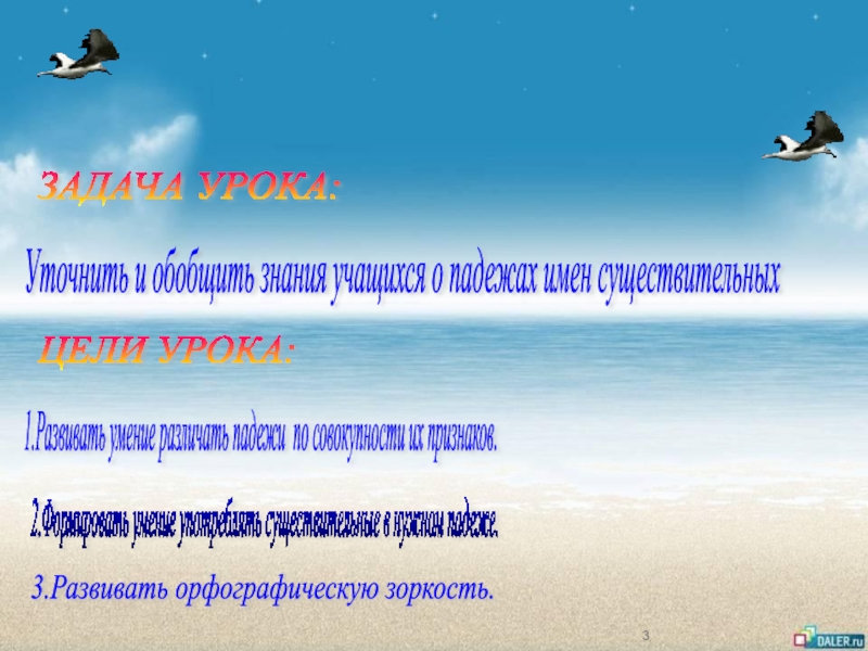 1.Развивать умение различать падежи по совокупности их признаков.