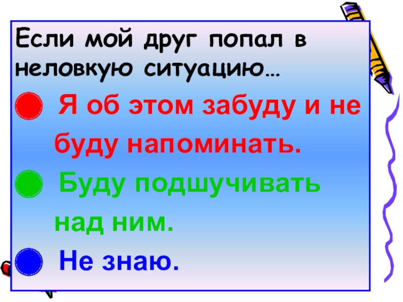 Слайд 14Если мой друг попал в неловкую ситуацию…
