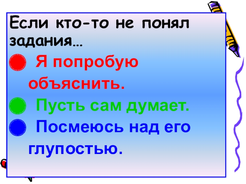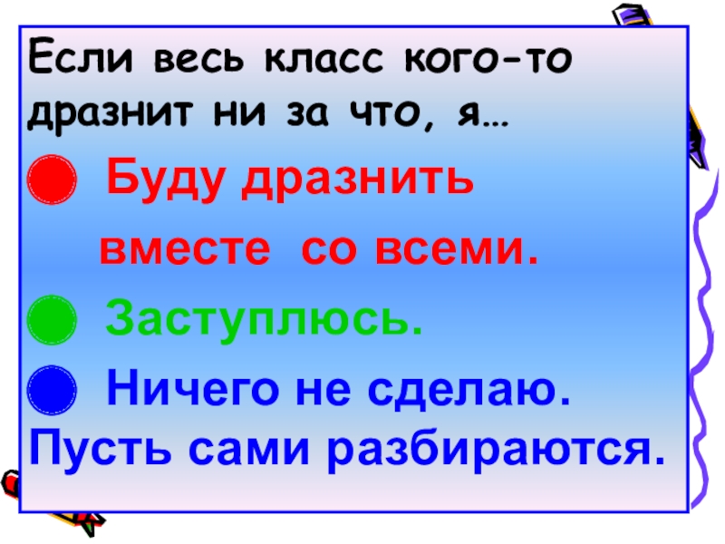 Слайд 12Если весь класс кого-то дразнит ни за что, я…