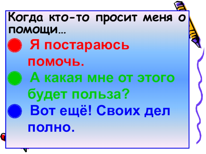 Слайд 15Если меня попросили подтянуть одноклассника по какому-либо предмету…