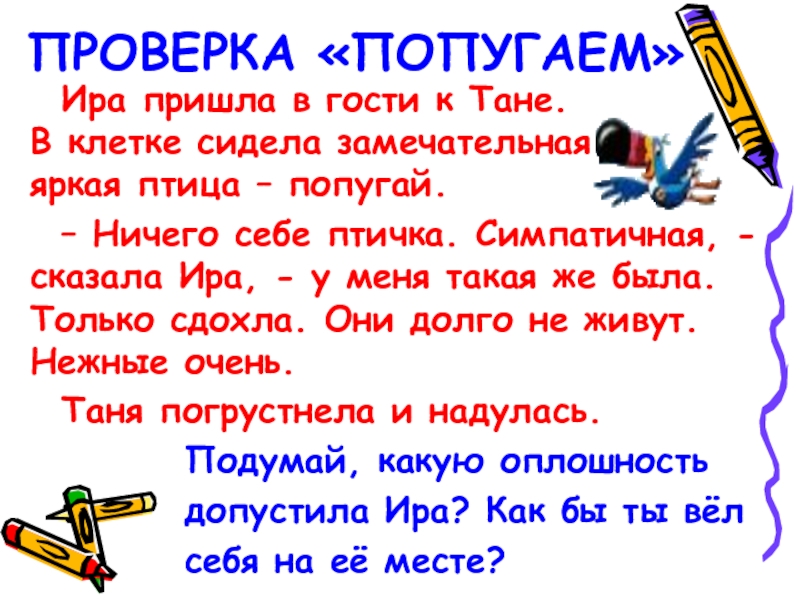 Слайд 6ПРОВЕРКА «ПОПУГАЕМ»