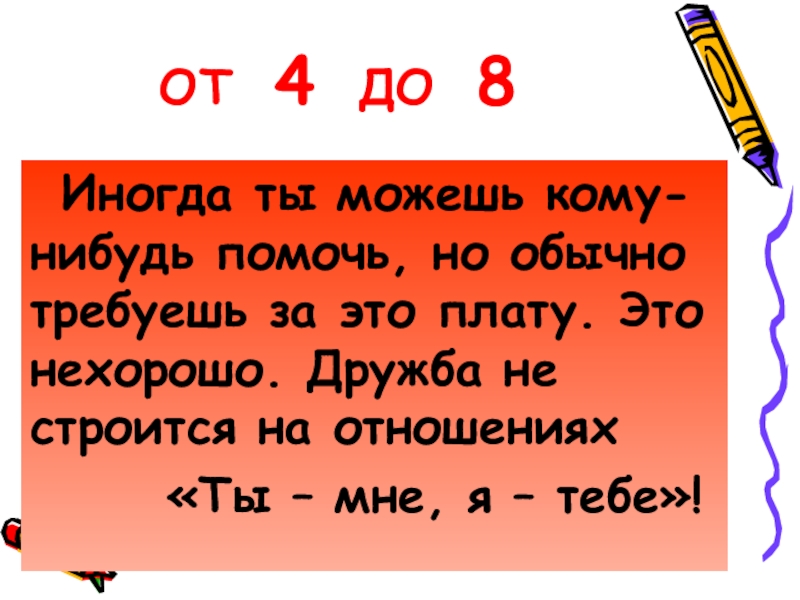 за это плату. Это нехорошо. Дружба не строится на отношениях