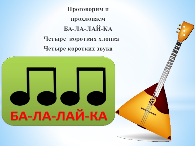 Проговорим ипрохлопаем БА-ЛА-ЛАЙ-КАЧетыре коротких хлопкаЧетыре коротких звука