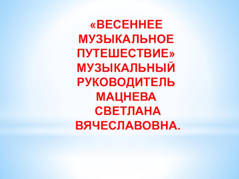«ВЕСЕННЕЕ МУЗЫКАЛЬНОЕПУТЕШЕСТВИЕ»МУЗЫКАЛЬНЫЙ РУКОВОДИТЕЛЬМАЦНЕВА СВЕТЛАНА ВЯЧЕСЛАВОВНА.