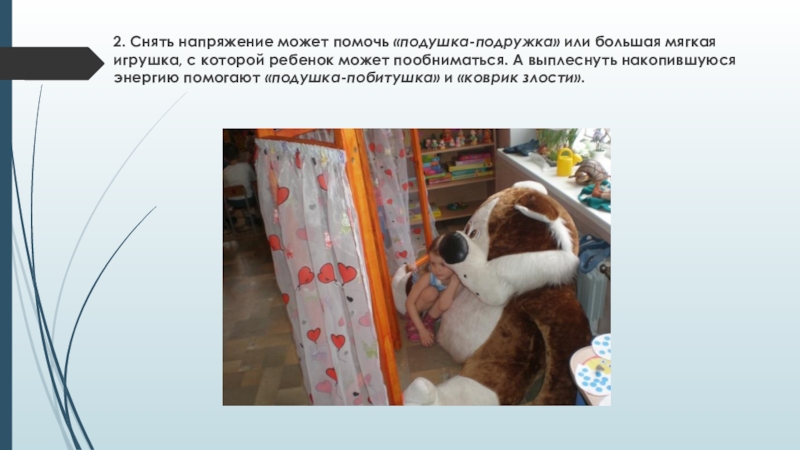 Слайд 242. Снять напряжение может помочь «подушка-подружка» или большая мягкая игрушка, с
