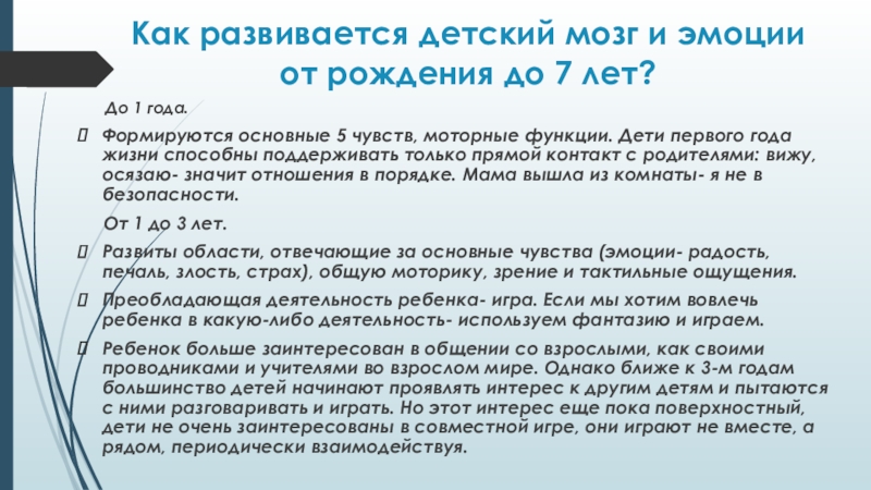 Слайд 5Как развивается детский мозг и эмоции от рождения до 7 лет?