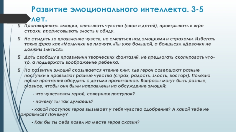 Слайд 12Развитие эмоционального интеллекта. 3-5 лет.