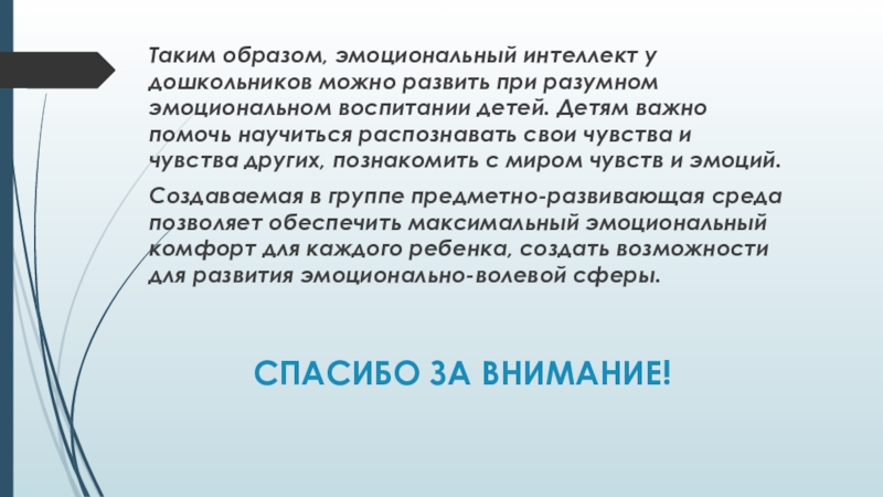 эмоциональный интеллект у дошкольников можно развить при разумном эмоциональном воспитании детей. Детям важно помочь научиться распознавать свои чувства и чувства других, познакомить с миром чувств и эмоций.