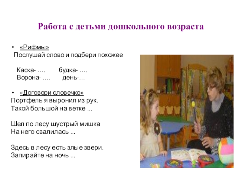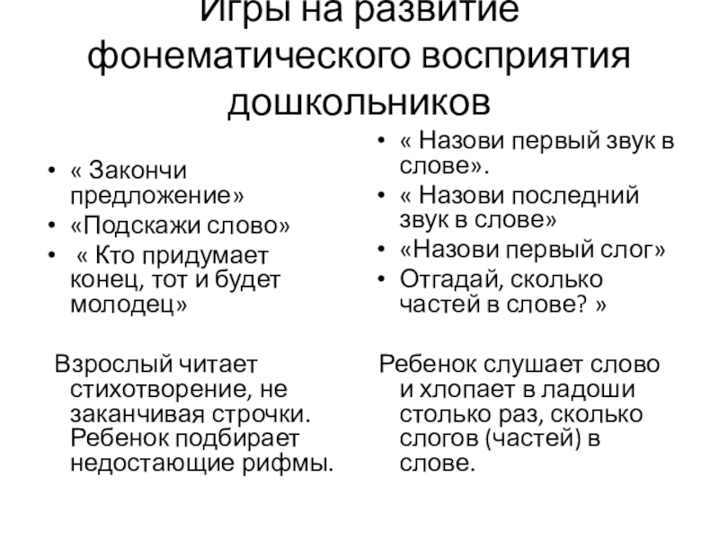 Ребенок слушает слово и хлопает в ладоши столько раз, сколько слогов (частей) в слове.