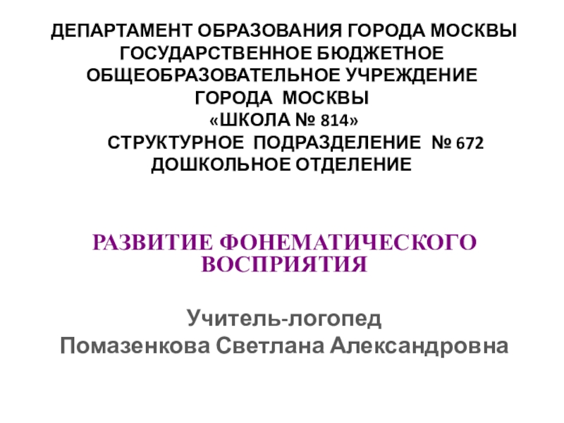 РАЗВИТИЕ ФОНЕМАТИЧЕСКОГО ВОСПРИЯТИЯ