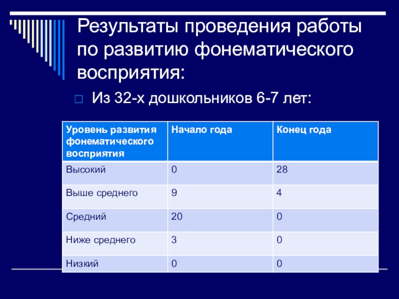 Слайд 18Результаты проведения работы по развитию фонематического восприятия: