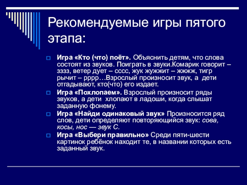 Слайд 15Рекомендуемые игры пятого этапа: