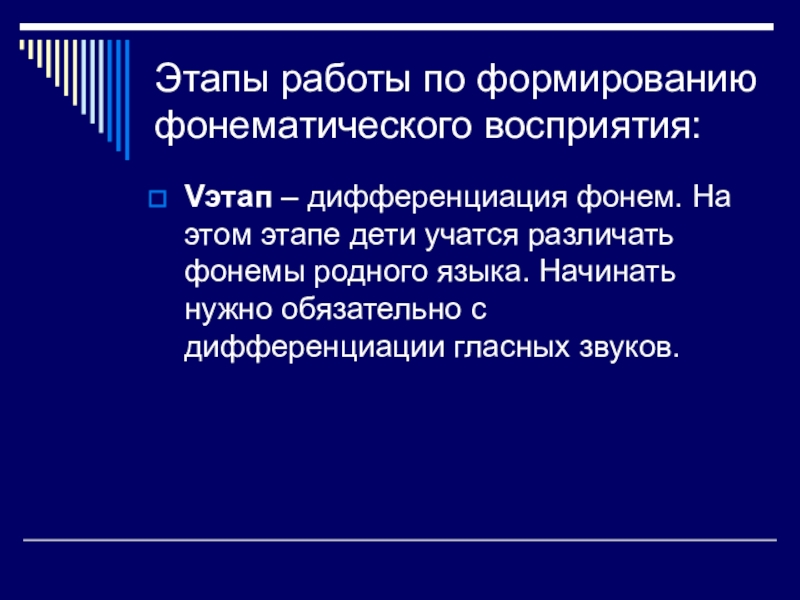 Vэтап – дифференциация фонем. На этом этапе дети
