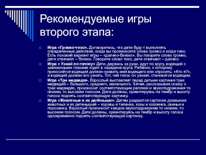 Слайд 9Рекомендуемые игры второго этапа: