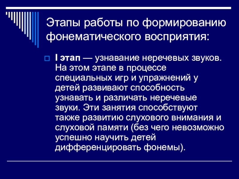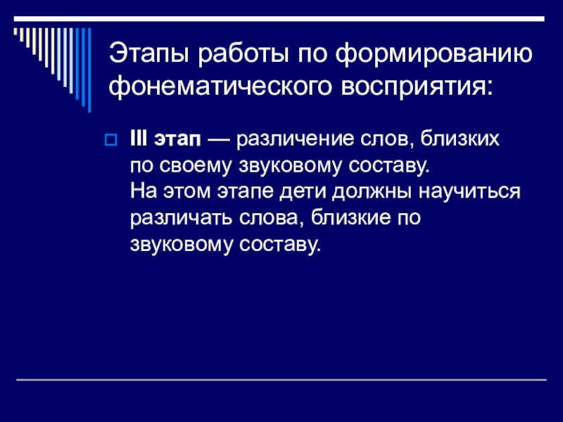 Слайд 10Этапы работы по формированию фонематического восприятия: