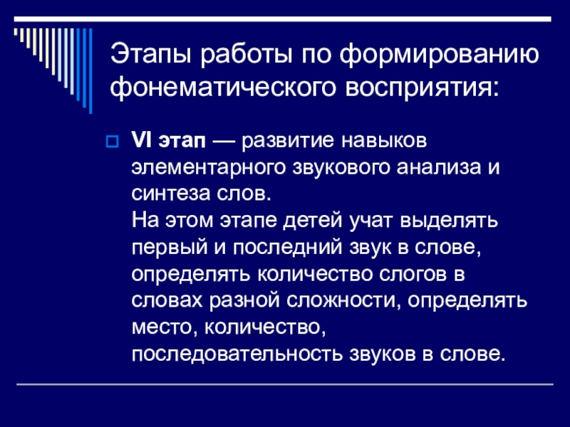 VI этап — развитие навыков элементарного звукового анализа