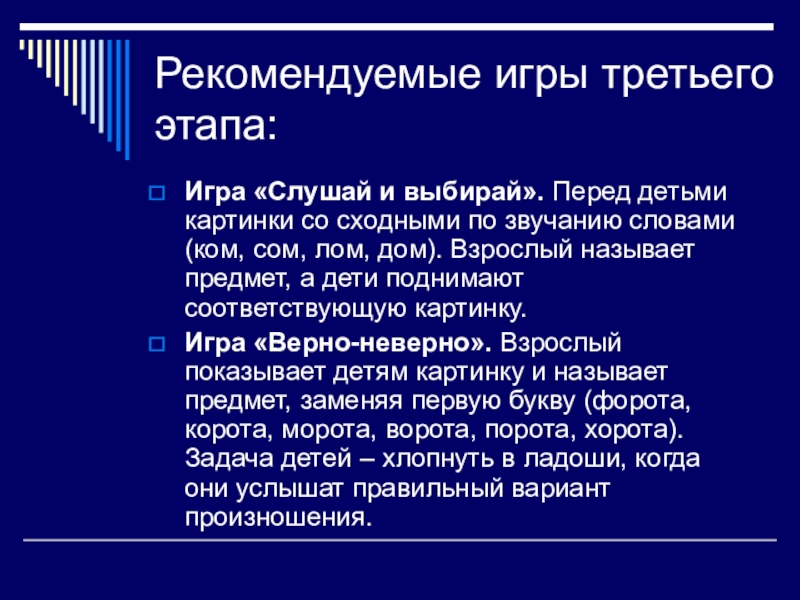 Слайд 11Рекомендуемые игры третьего этапа: