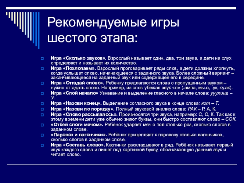 Слайд 17Рекомендуемые игры шестого этапа: