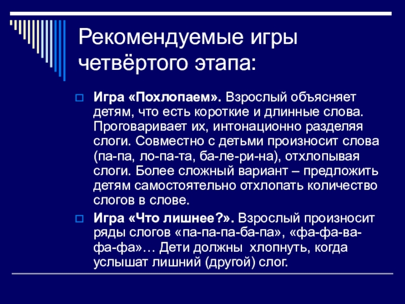Слайд 13Рекомендуемые игры четвёртого этапа: